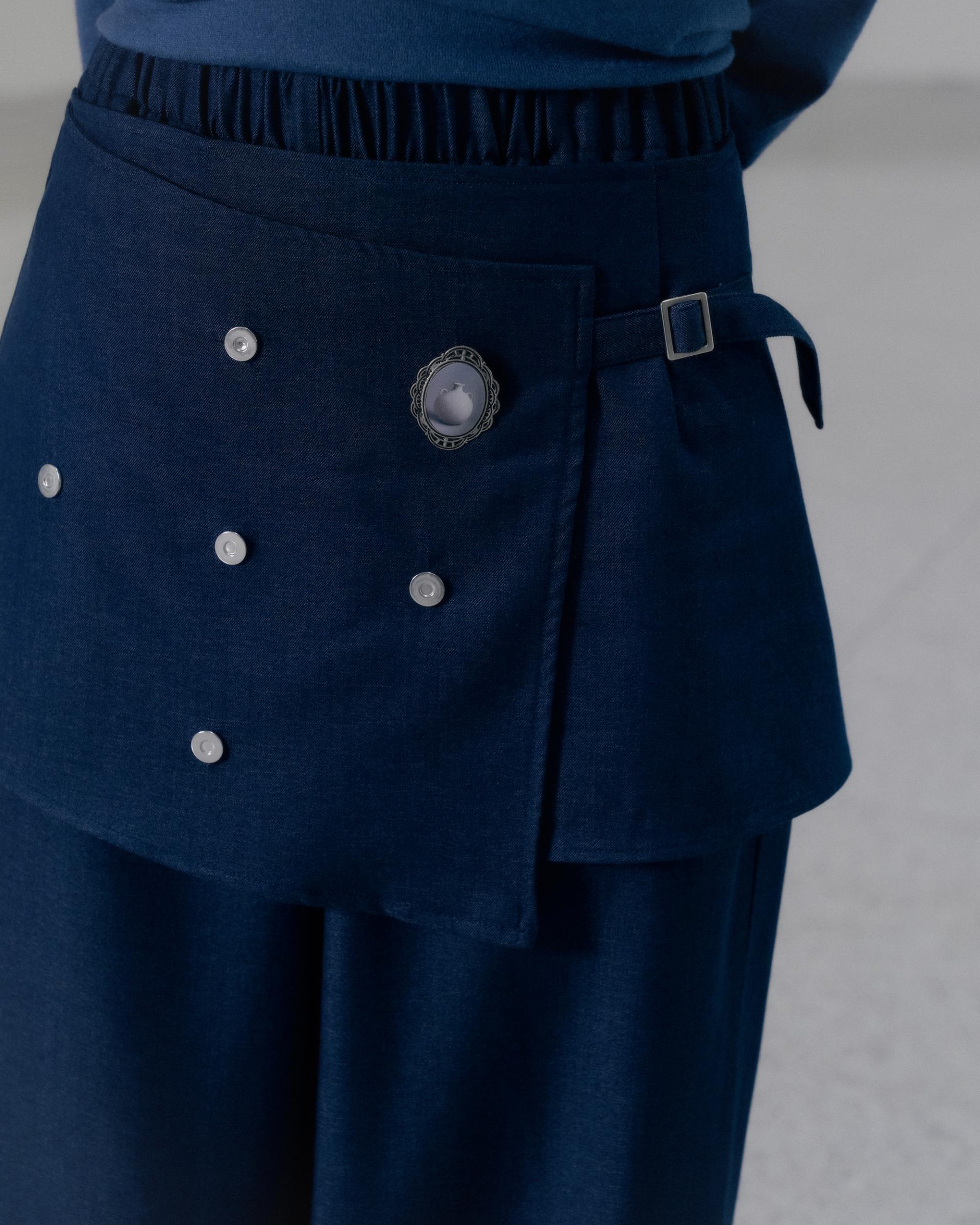 오목 랩스커트 레이어드 팬츠 (인디고)