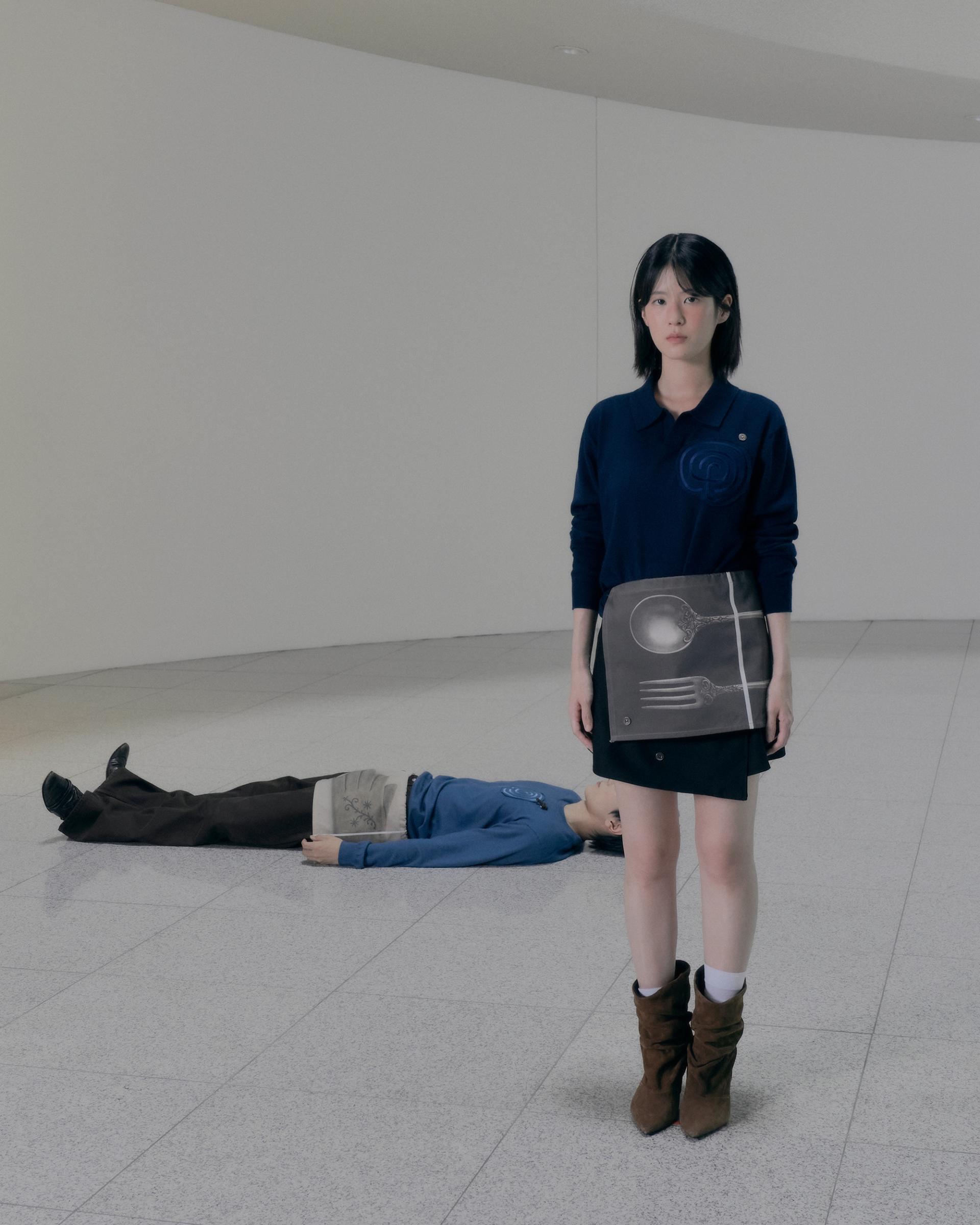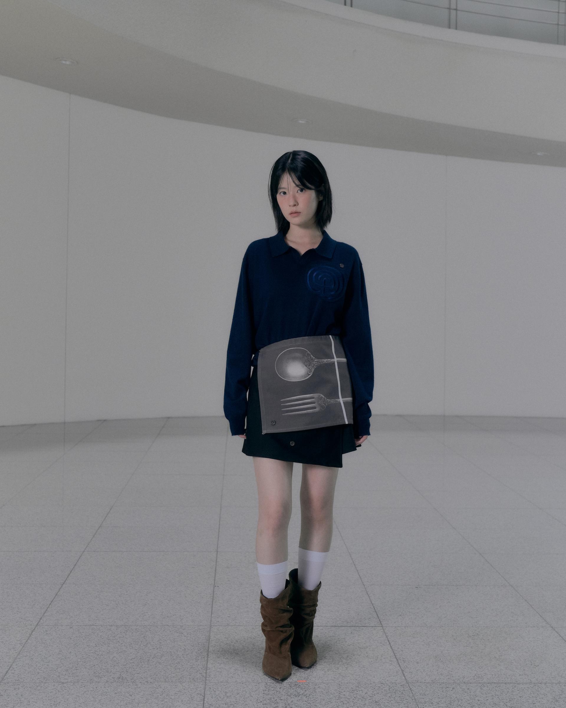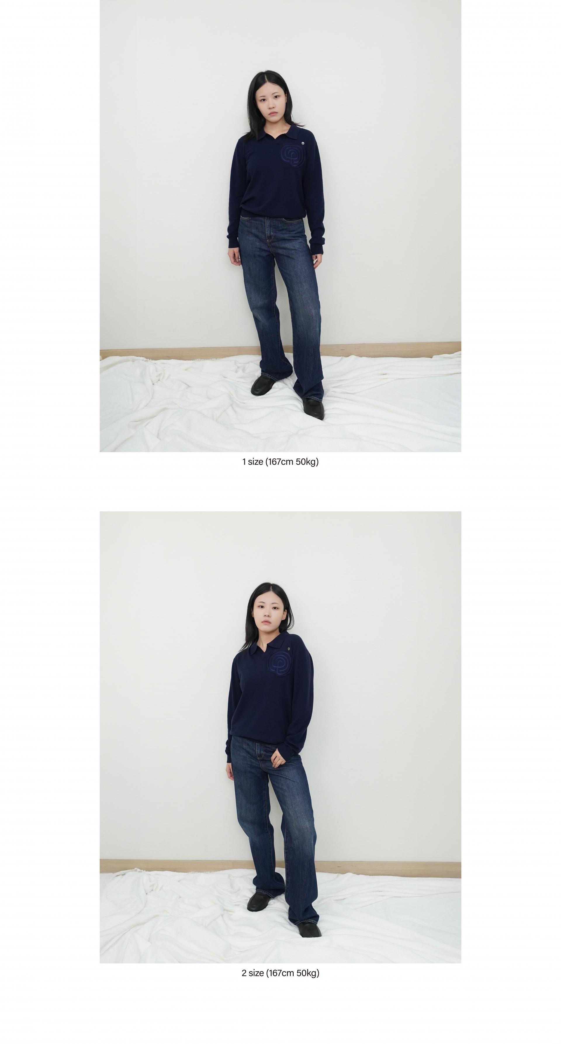 하트 라비린스 소프트 오픈 카라 니트 (네이비)
